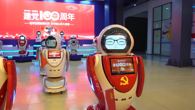 醒少年機(jī)黨建大廳迎賓機(jī)器人