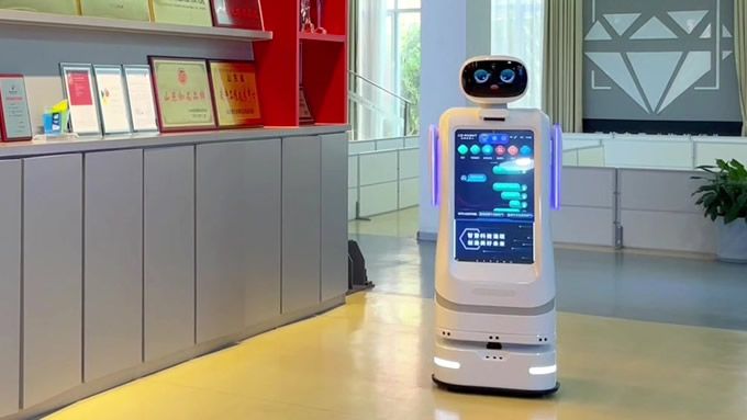 江禹舜進大屏導航智能機器人